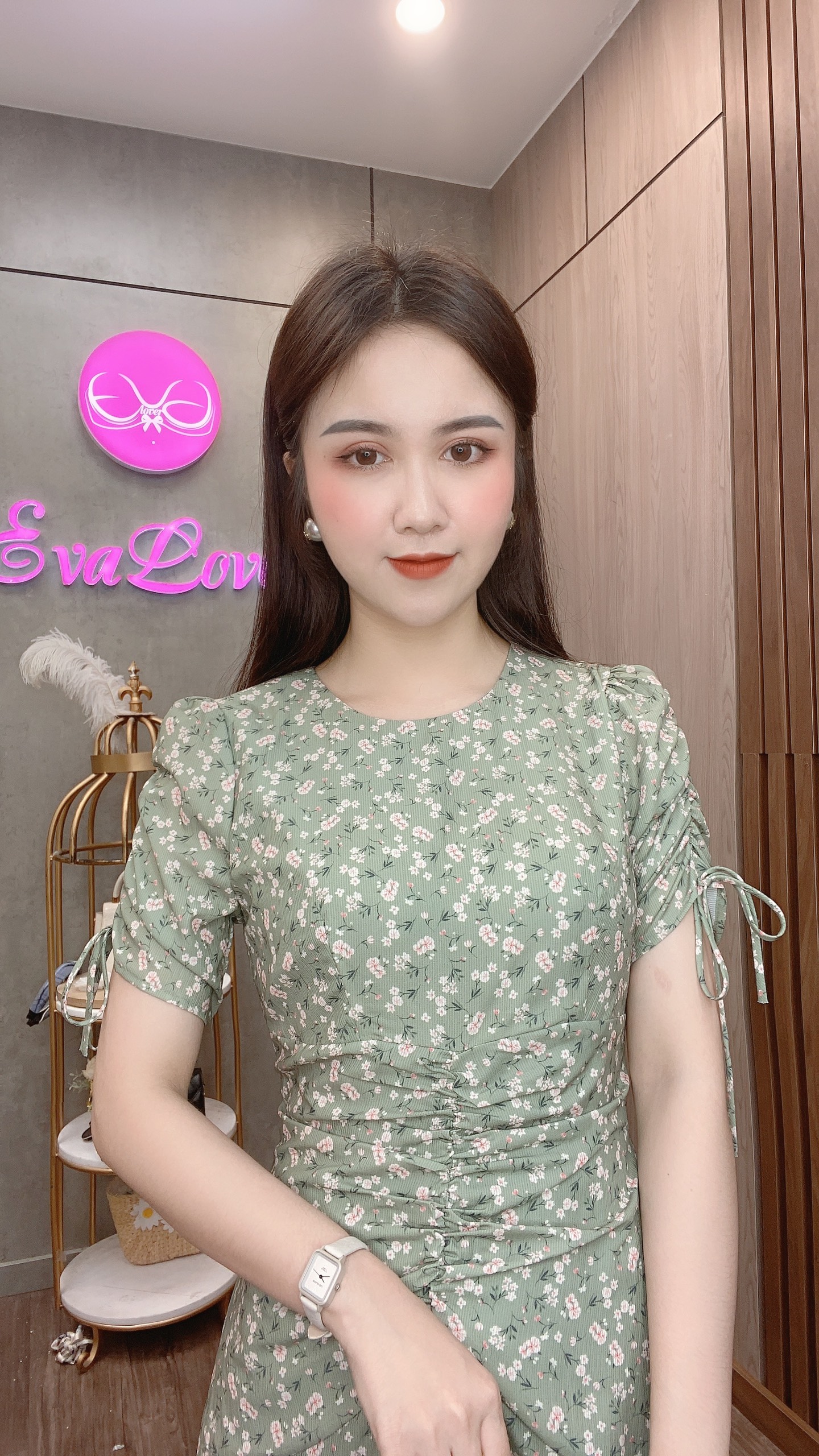 Váy hoa nhí 2 lớp nhúm eo nhúm tay cổ tròn